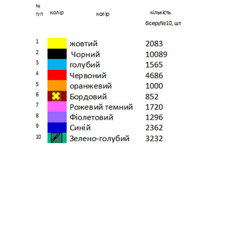 При бажанні комплектуємо чеським бісером з 15% запасом, а також ниткою для бісеру та голкою.