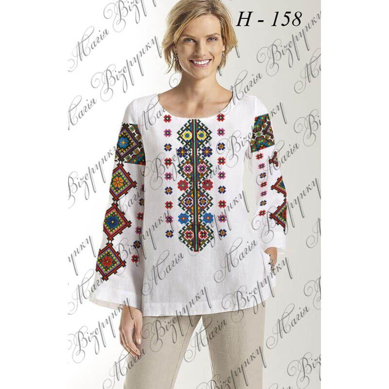 Заготовка складається з двох полотен 75*75 см на передню частину і на спинку (без вишивки) та двох полотен 75*65 см на рукави. В комплект входить інструкція в якій вказано кольори бісеру і його кількість, рекомендовані номери ниток DMC. Дану заготовку ви можете скроїти за своїми розмірами та фасоном.