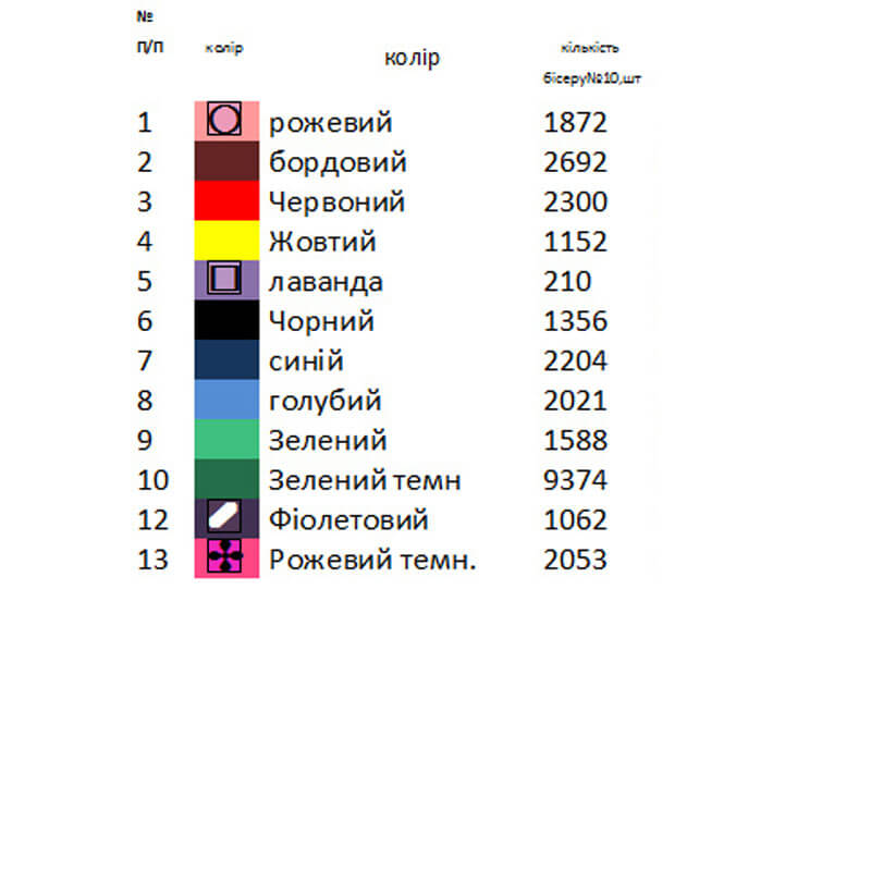 При бажанні комплектуємо чеським бісером з 15% запасом, а також ниткою для бісеру та голкою.