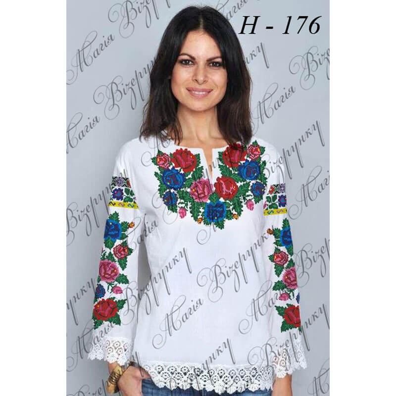Заготовка складається з двох полотен 75*75 см на передню частину і на спинку (без вишивки) та двох полотен 75*65 см на рукави. В комплект входить інструкція в якій вказано кольори бісеру і його кількість, рекомендовані номери ниток DMC. Дану заготовку ви можете скроїти за своїми розмірами та фасоном.