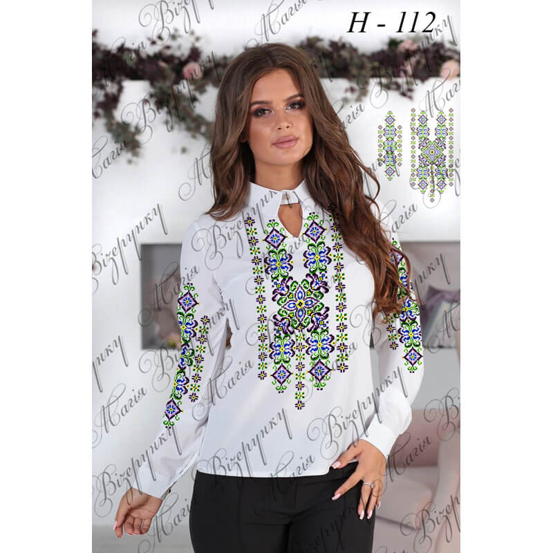 Заготовка складається з двох полотен 75*75 см на передню частину і на спинку (без вишивки) та двох полотен 75*65 см на рукави. В комплект входить інструкція в якій вказано кольори бісеру і його кількість, рекомендовані номери ниток DMC. Дану заготовку ви можете скроїти за своїми розмірами та фасоном.