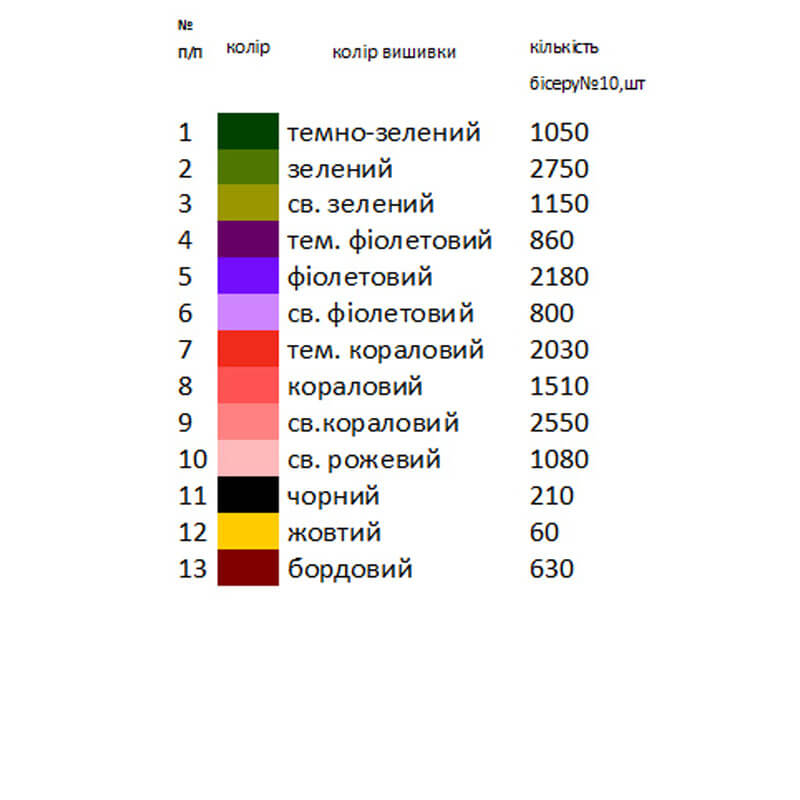 При бажанні комплектуємо чеським бісером з 15% запасом, а також ниткою для бісеру та голкою.
