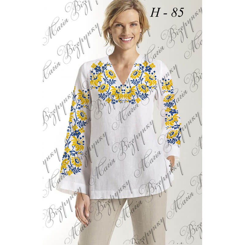 Заготовка складається з двох полотен 75*75 см на передню частину і на спинку (без вишивки) та двох полотен 75*65 см на рукави. В комплект входить інструкція в якій вказано кольори бісеру і його кількість, рекомендовані номери ниток DMC. Дану заготовку ви можете скроїти за своїми розмірами та фасоном.