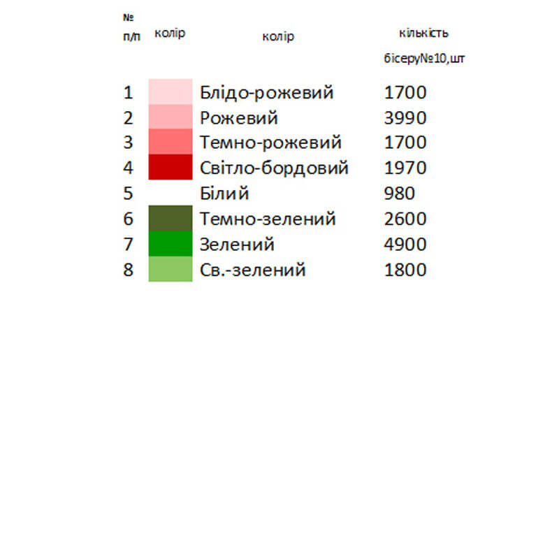 При бажанні комплектуємо чеським бісером з 15% запасом, а також ниткою для бісеру та голкою.