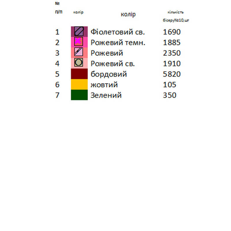 При бажанні комплектуємо чеським бісером з 15% запасом, а також ниткою для бісеру та голкою.