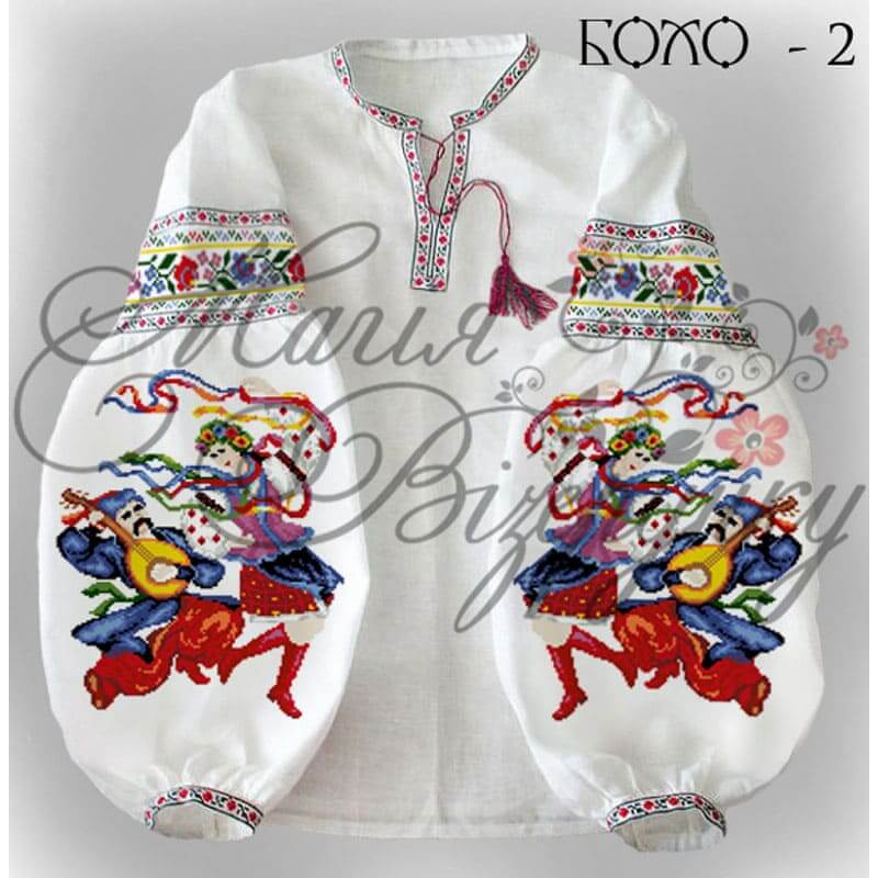 Жіноча сорочка Бохо-2 для вишивки бісером, нитками або в змішаній техніці з нанесеною повноколірною схемою на тканині. Заготовка складається з двох полотен 75*75 см на передню частину і на спинку (без вишивки) та двох полотен 75*75 см на рукави. В комплект входить інструкція в якій вказано кольори бісеру і його кількість, рекомендовані номери ниток DMC. Дану заготовку ви можете скроїти за своїми розмірами та фасоном. Можливі тканини: • домоткана біла (40% бавовна 60% поліестер) • габардин білий (100% поліестер, не мнеться, добре носитися, добре пропускає повітря, гірше пропускає вологу) При бажанні комплектуємо чеським бісером з 15% запасом, а також ниткою для бісеру та голкою