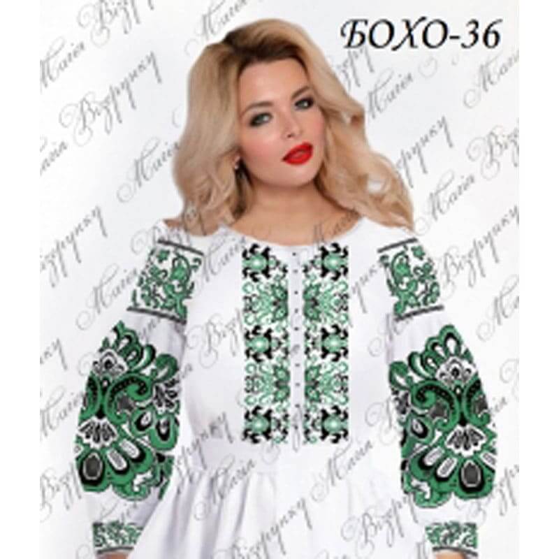 Жіноча сорочка Бохо-36 для вишивки бісером, нитками або в змішаній техніці з нанесеною повноколірною схемою на тканині. Заготовка складається з двох полотен 75*75 см на передню частину і на спинку (без вишивки) та двох полотен 75*75 см на рукави. В комплект входить інструкція в якій вказано кольори бісеру і його кількість, рекомендовані номери ниток DMC. Дану заготовку ви можете скроїти за своїми розмірами та фасоном. Можливі тканини: • домоткана біла (40% бавовна 60% поліестер) • габардин білий (100% поліестер, не мнеться, добре носитися, добре пропускає повітря, гірше пропускає вологу) При бажанні комплектуємо чеським бісером з 15% запасом, а також ниткою для бісеру та голкою