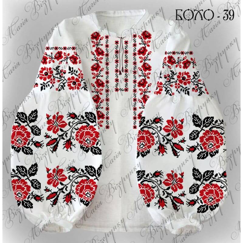 Жіноча сорочка Бохо-39 для вишивки бісером, нитками або в змішаній техніці з нанесеною повноколірною схемою на тканині. Заготовка складається з двох полотен 75*75 см на передню частину і на спинку (без вишивки) та двох полотен 75*75 см на рукави. В комплект входить інструкція в якій вказано кольори бісеру і його кількість, рекомендовані номери ниток DMC. Дану заготовку ви можете скроїти за своїми розмірами та фасоном. Можливі тканини: • домоткана біла (40% бавовна 60% поліестер) • габардин білий (100% поліестер, не мнеться, добре носитися, добре пропускає повітря, гірше пропускає вологу) При бажанні комплектуємо чеським бісером з 15% запасом, а також ниткою для бісеру та голкою
