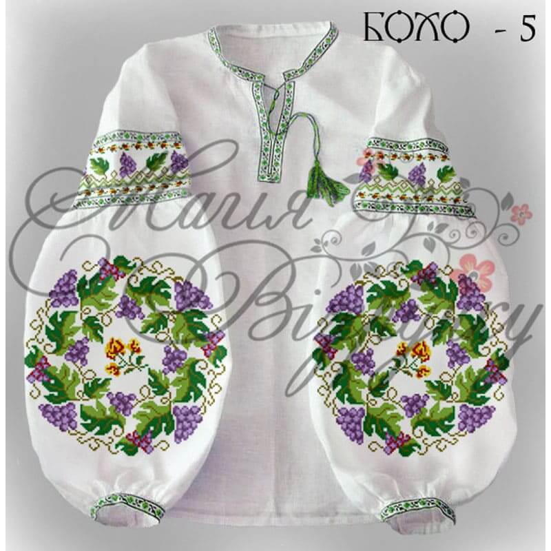 Жіноча сорочка Бохо-5 для вишивки бісером, нитками або в змішаній техніці з нанесеною повноколірною схемою на тканині. Заготовка складається з двох полотен 75*75 см на передню частину і на спинку (без вишивки) та двох полотен 75*75 см на рукави. В комплект входить інструкція в якій вказано кольори бісеру і його кількість, рекомендовані номери ниток DMC. Дану заготовку ви можете скроїти за своїми розмірами та фасоном. Можливі тканини: • домоткана біла (40% бавовна 60% поліестер) • габардин білий (100% поліестер, не мнеться, добре носитися, добре пропускає повітря, гірше пропускає вологу) При бажанні комплектуємо чеським бісером з 15% запасом, а також ниткою для бісеру та голкою